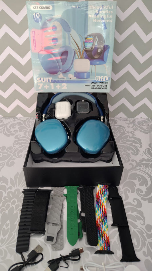 COMBO K32 SMARTWATCH + 7 PULSOS , DIADEMA MAX, AIRPODS MAX