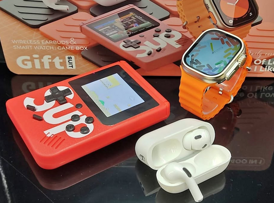 COMBO K5 SMARTWATCH, AUDÍFONOS INALAMBRICOS Y GAME BOY SUP