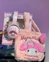 AUDIFONOS DIADEMA BLUETOOTH SANRIO + BOLSO DE PELUCHE