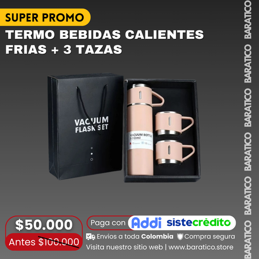 TERMO BEBIDAS CALIENTES FRÍAS + 3 TAZAS 🍵