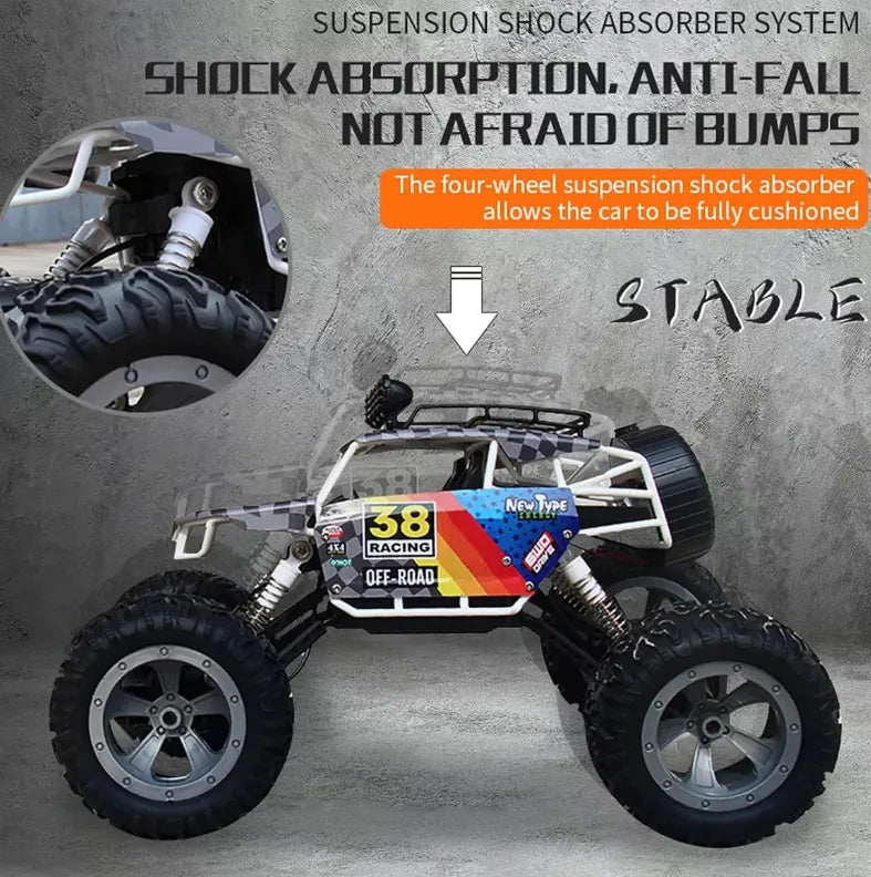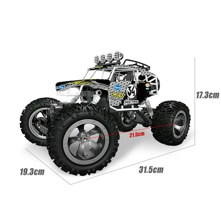 Este increíble carro a control remoto todoterreno adopta un sistema de control de radio de 2.4 GHz, que ofrece una conexión estable y sin interferencias para disfrutar de carreras llenas de acción.
