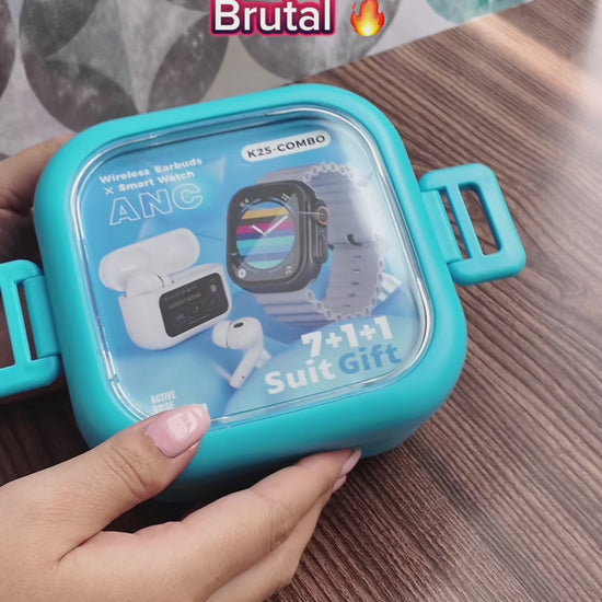 El K25-COMBO es un set de tecnología práctica que incluye un reloj inteligente multifuncional y unos audífonos inalámbricos. Está pensado para quienes desean estar conectados y disfrutar de su música con calidad, todo en un estuche rígido reutilizable disponible en colores azul, rosa y amarillo.