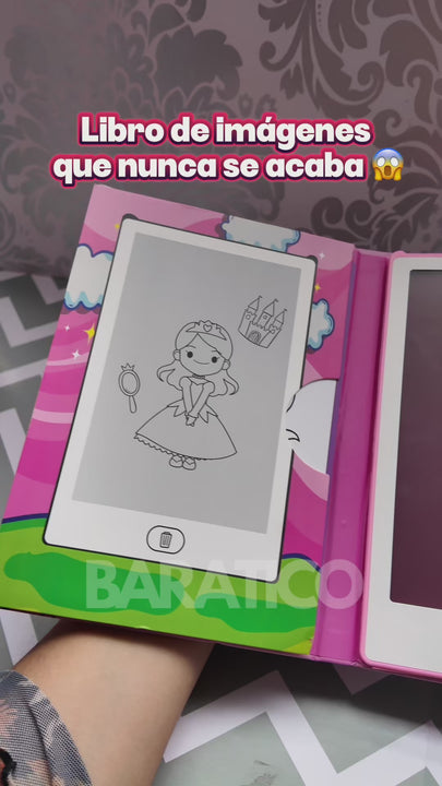 Pizarra mágica y digital Lcd adecuada para el desarrollo intelectual y motriz de los niños, el cual contiene variedad de plantillas para plasmar como dibujos y escritura.